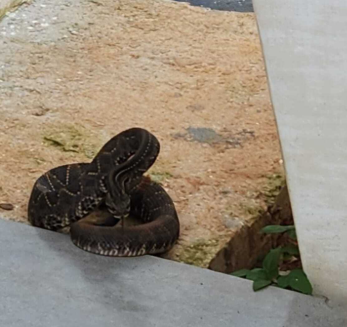 Segundo ela, a cobra foi identificada pelos cães que latiam muito. Ao decidir verificar o que estava acontecendo, a Sra. D. M. G. N, de 50 anos de idade, visualizou a cascavel próximo à garagem.