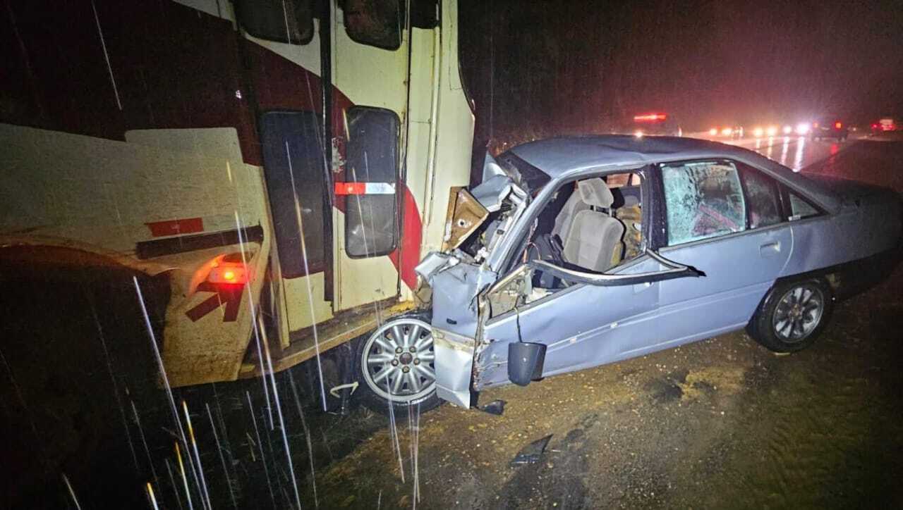 Bombeiros atende colisão entre ônibus e carro na MG 428