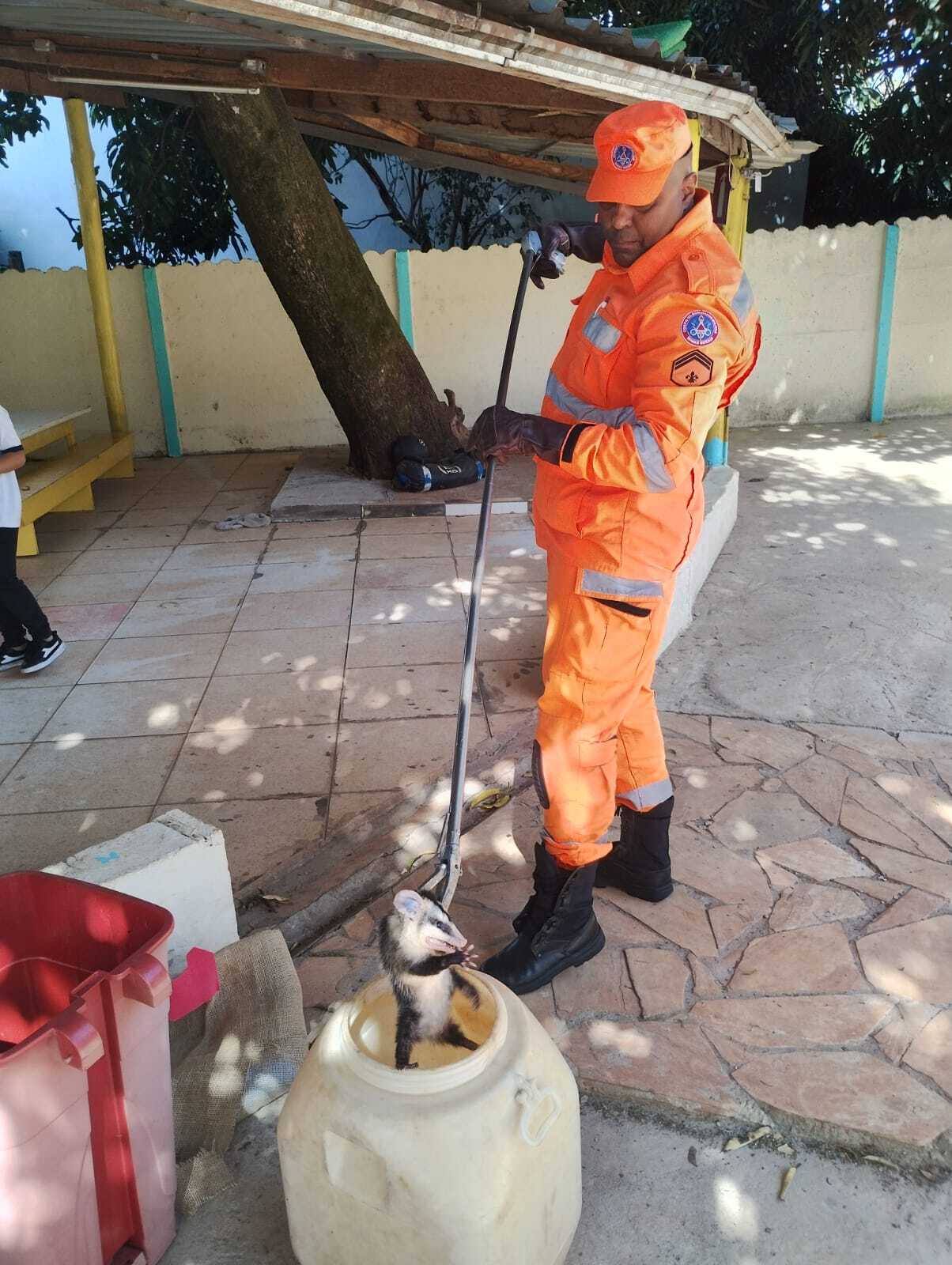 No local os militares constataram se tratar de dois gambás da espécie Saruê. Os animais foram localizados por uma professora e se encontravam dentro de uma lixeira no pátio externo de uma escola.