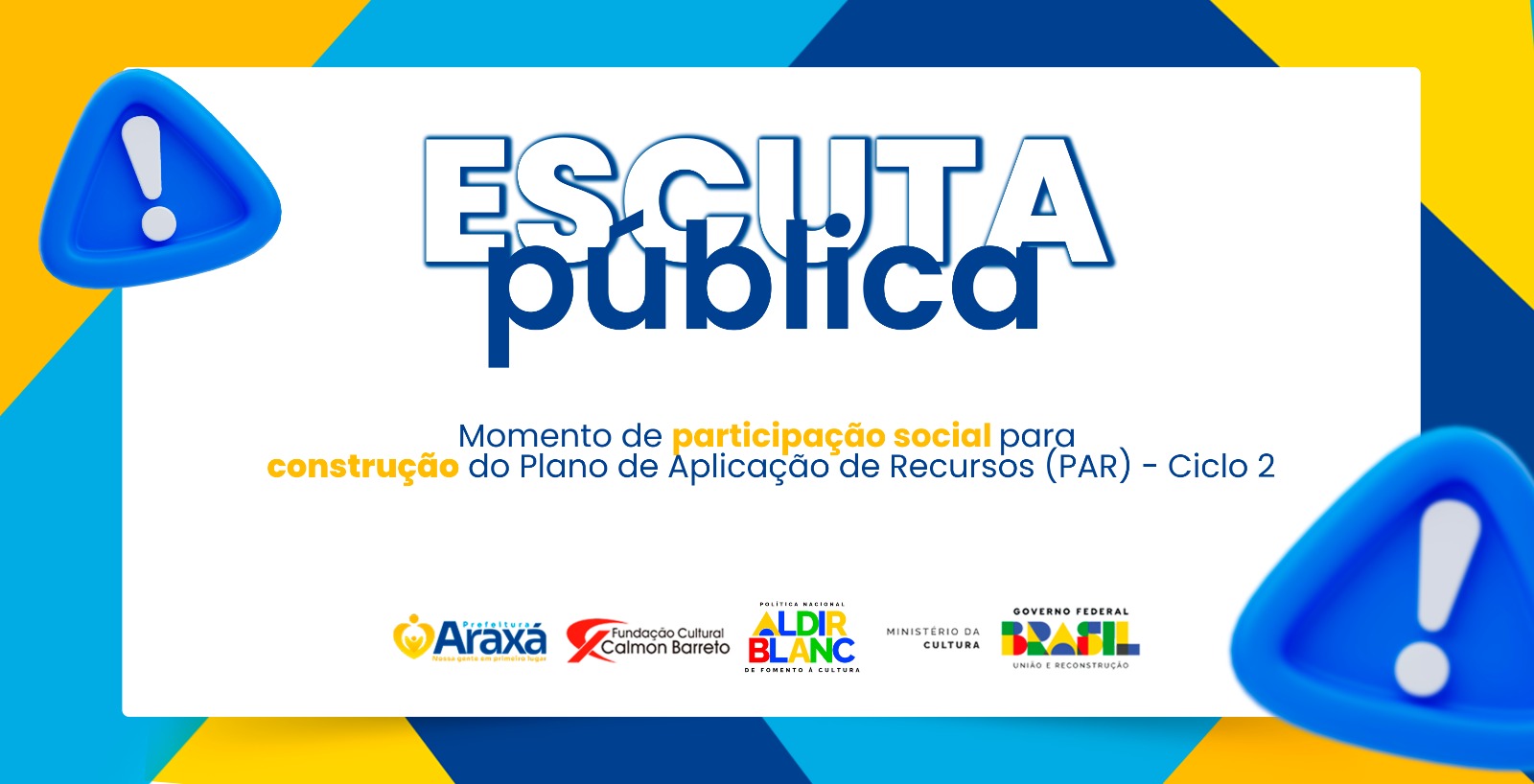 A Fundação Cultural Calmon Barreto (FCCB) realiza na quinta-feira, 26 de junho, às 18h30, uma escuta pública com artistas de Araxá para discutir a aplicação dos recursos da Política Nacional Aldir Blanc (PNAB) – Ciclo 2. O encontro será realizado no auditório da Prefeitura de Araxá, no Centro Administrativo.
