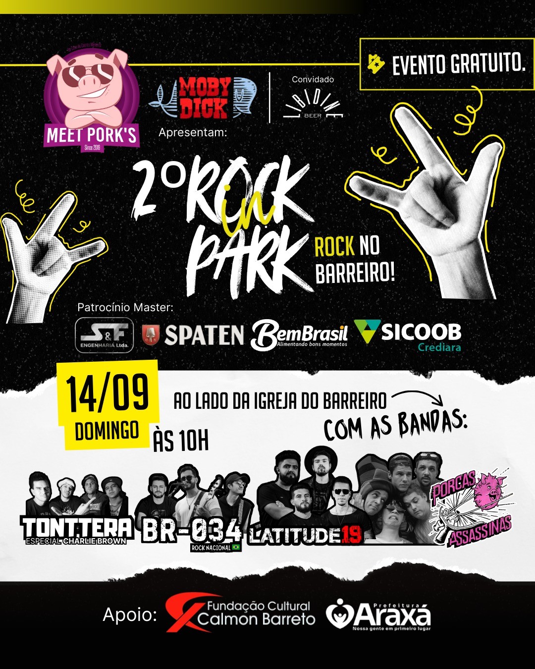 O evento é idealizado pelos bares Meet Pork’s e Moby Dick, com participação da Libidine Beer. A programação inclui apresentações dos grupos Tonttéra, com especial Charlie Brown Jr.; BR-034, com repertório de rock nacional; Latitude 19; e Porcas Assassinas.