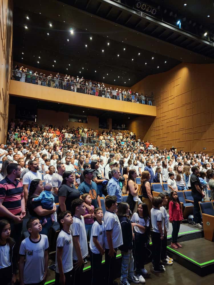 O evento realizado no teatro Uniaraxá celebrou a conclusão do currículo do 5º ano do ensino fundamental, um trabalho desenvolvido pelo Batalhão desde 2003, em parceria com a Secretaria de Educação. A cerimônia reafirmou o compromisso dos alunos em optar por uma vida saudável, sem o uso de drogas e sem violência.