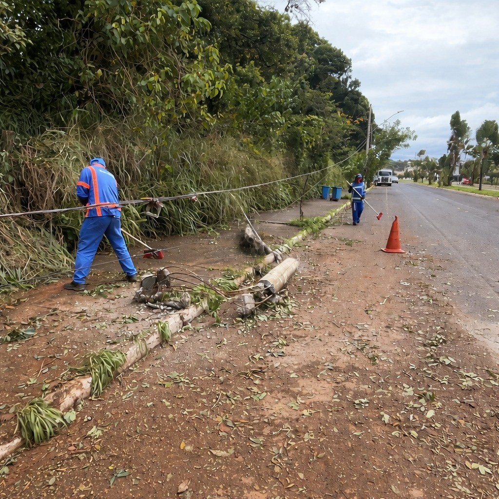 Desde o fim da tarde de quinta-feira, as secretarias municipais de Serviços Urbanos e Obras Públicas mantêm equipes em campo realizando a retirada de galhos e árvores, limpeza das vias e avaliação dos danos. Também houve perda de trechos da malha asfáltica em bairros como Vila Silvéria, Fertiza e Mangabeiras, onde já estão sendo realizados reparos emergenciais.