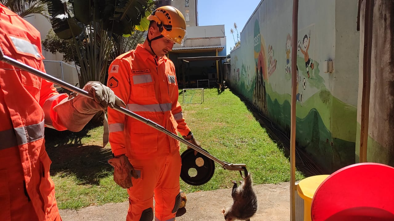 Corpo de Bombeiros captura gambá em escola infantil de Araxá