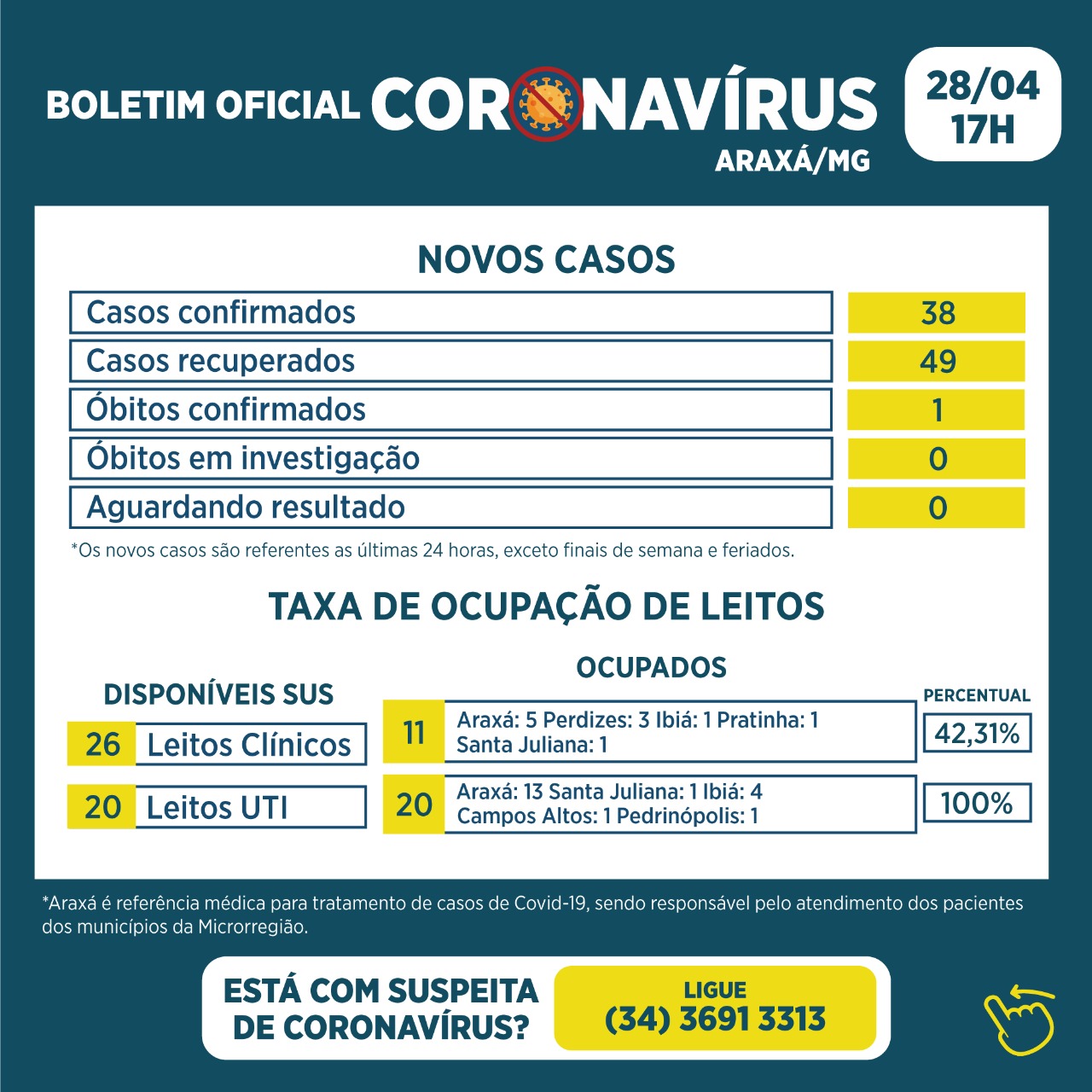 A Secretaria Municipal de Saúde informa que um óbito foi registrado nesta quarta-feira (28). Trata-se de uma mulher de 66 anos.