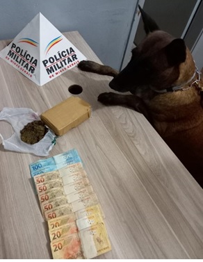 Em sua posse foi localizada uma bucha grande de substância semelhante a maconha com peso aproximado de 40 gramas e certa quantia em dinheiro. Os militares utilizaram os trabalhos da cadela ‘Alana’ da ROCCA/37º BPM, que através do faro localizou em meio à vegetação uma barra grande de substância semelhante à maconha, com peso aproximando de 500 gramas.