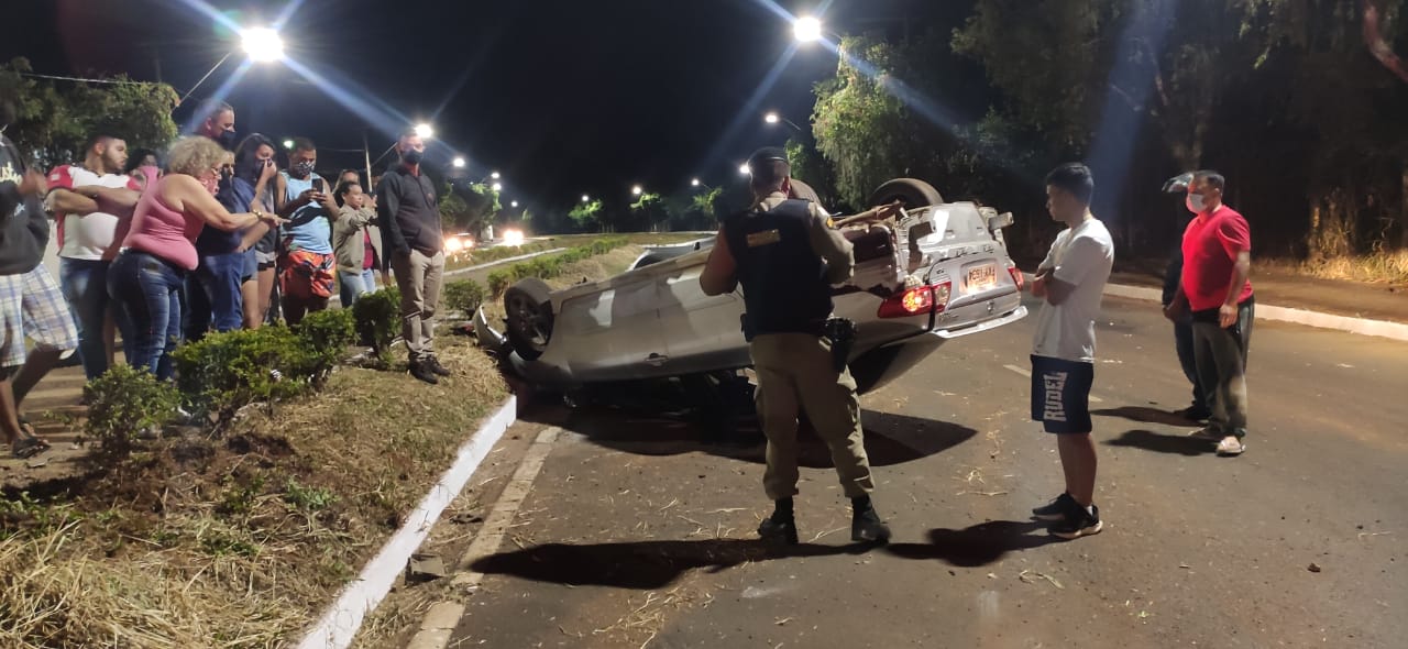O Corpo de Bombeiros atendeu a ocorrência na noite desta quarta-feira (19), por volta das 22h d. Segundo o motorista, ele perdeu o controle do carro ao desviar de um cão, vindo a capotar. Ainda segundo o condutor, o carro pertence ao seu pai, que é caminhoneiro e se encontra viajando a trabalho.